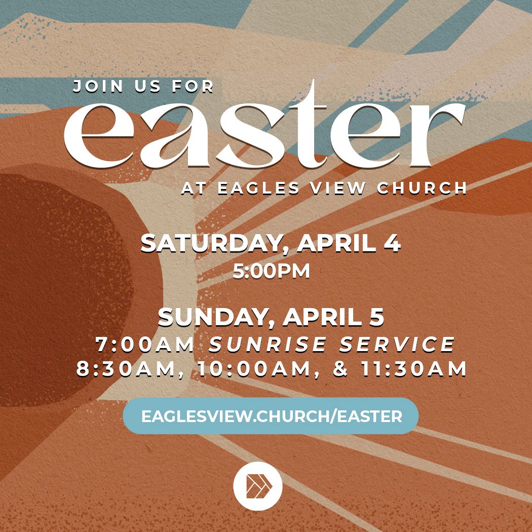 At EVC, you don’t have to be in the same room as us to be a part of us! Join us online every Sunday at 11 am on Facebook, Youtube, and eaglesview.church/live